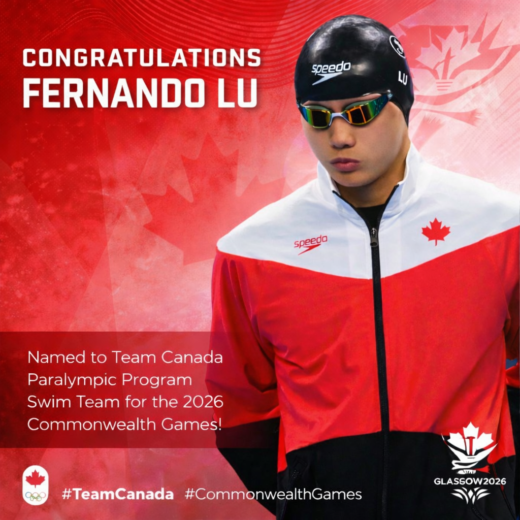 Olympians Swimming is proud to announce that Fernando Lu has been named to Team Canada’s Paralympic Program swim team for the 2026 Commonwealth Games in Glasgow, Scotland.