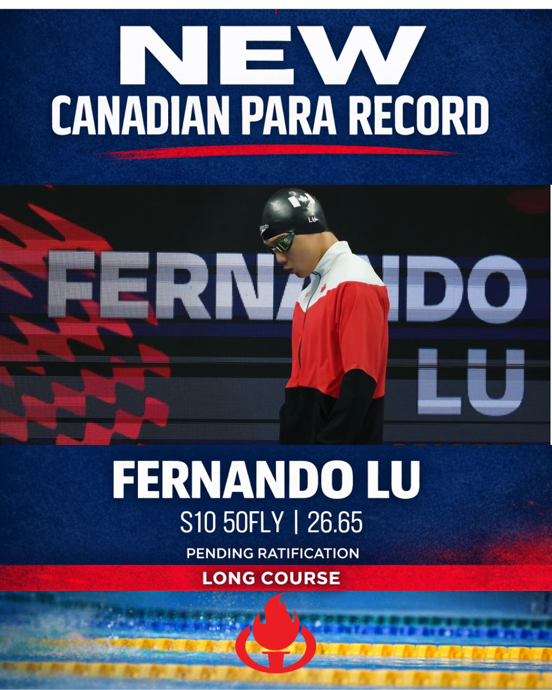 Fernando captured gold in the S10 50m Butterfly, posting a time of 26.65 and setting a new Canadian Para Record in the process — an extraordinary achievement and a proud moment for our club.