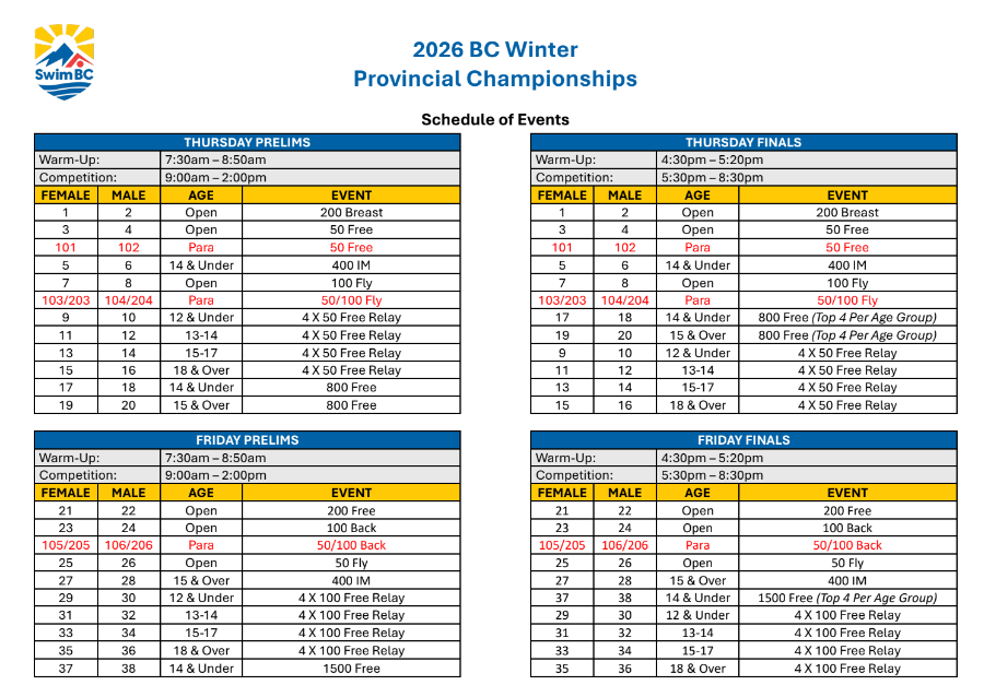 2026 Swim BC Winter Provincials