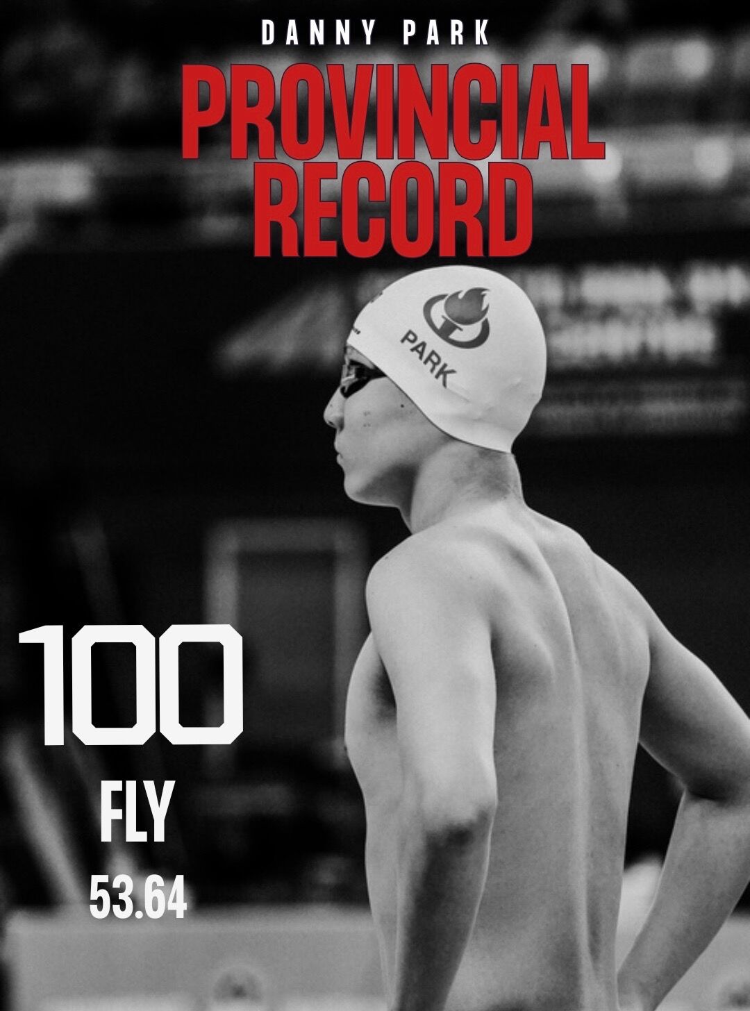 But he didn’t stop there. Danny also lowered his own provincial record in the 200m butterfly, posting an incredible 1:56.29. Another milestone, another reminder of his relentless pursuit of excellence.